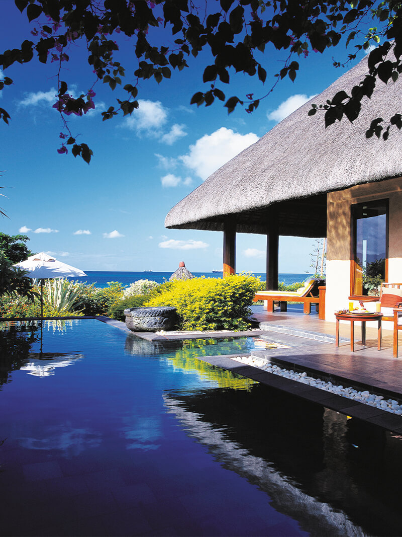 The Oberoi Beach Resort, Mauritius to wykwintne miejsce położone przy plaży, zapewniające nieprzerwane widoki na ocean, góry i zachód słońca. Wille kryte trzciną, wysokie sufity i paleta naturalnych kolorów tworzą atmosferę pełną relaksu. W tym miejscu możesz rozkoszować się widokiem na ogród podczas kąpieli w łazience. Zrelaksować się w salonie. Odpocząć w ogrzewanym prywatnym basenie lub w jadalni na świeżym powietrzu, obserwując zmieniające się kolory wieczornego nieba podczas zachodu słońca.